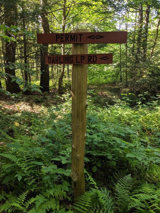 In the winter, visitors can ski on the old woods roads, named Hawes Loop and Darling Loop on trail signs. However, summer use of these trails is not recommended beyond what is shown on the map because there are many raspberries and blackberries covering the trails. Snowshoers and fat bikers can use the woods roads or the singletrack.