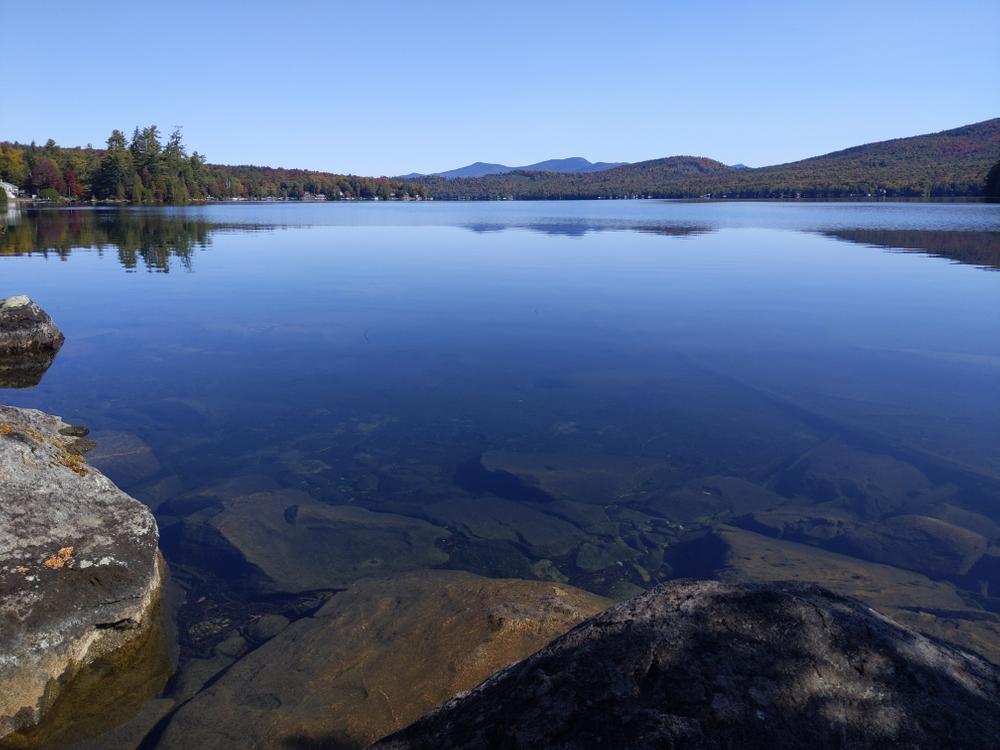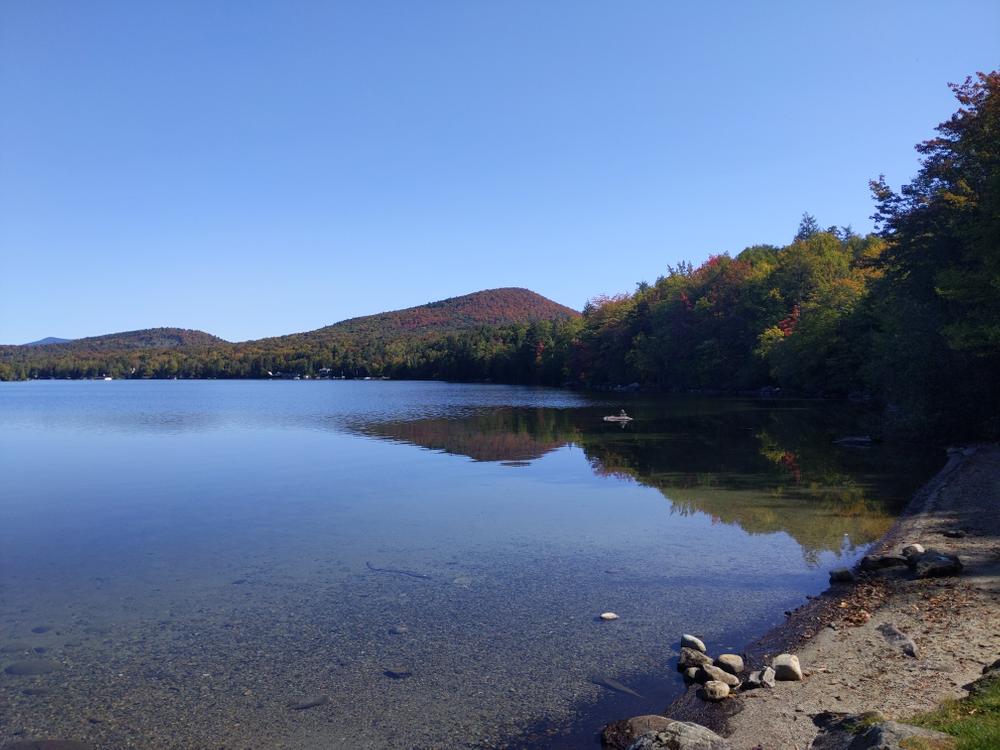 The Loon Trail follows the rocky shoreline to the end of the lake and then makes a small loop. There is a beautiful view over the lake on the peninsula at the far end of the loop. Keep an eye out for loons and other wildlife in the cove.