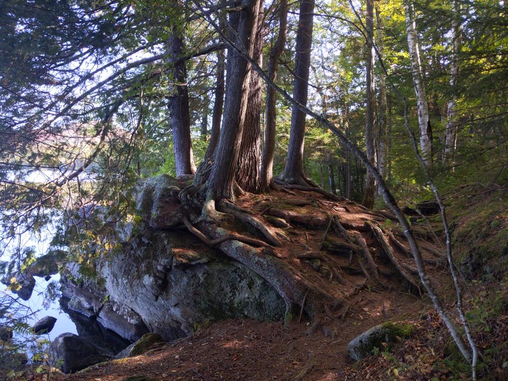 The Shore Trail travels along the edge of the lake between the two campground areas through primarily hemlock and cedar forest.