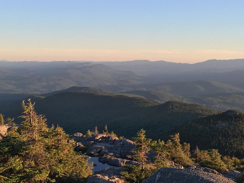 The ascent to Mount Hunger is a steady slope and near the top scrambling is required over rocky terrain. From the summit, almost every peak in the Green Mountain Range is visible including Camel’s Hump, Killington and Mt. Mansfield on its northern end. Beyond this range one may catch a glimpse of Lake Champlain and the Adirondacks. Many peaks of the White Mountains are visible on the horizon to the east.