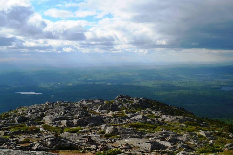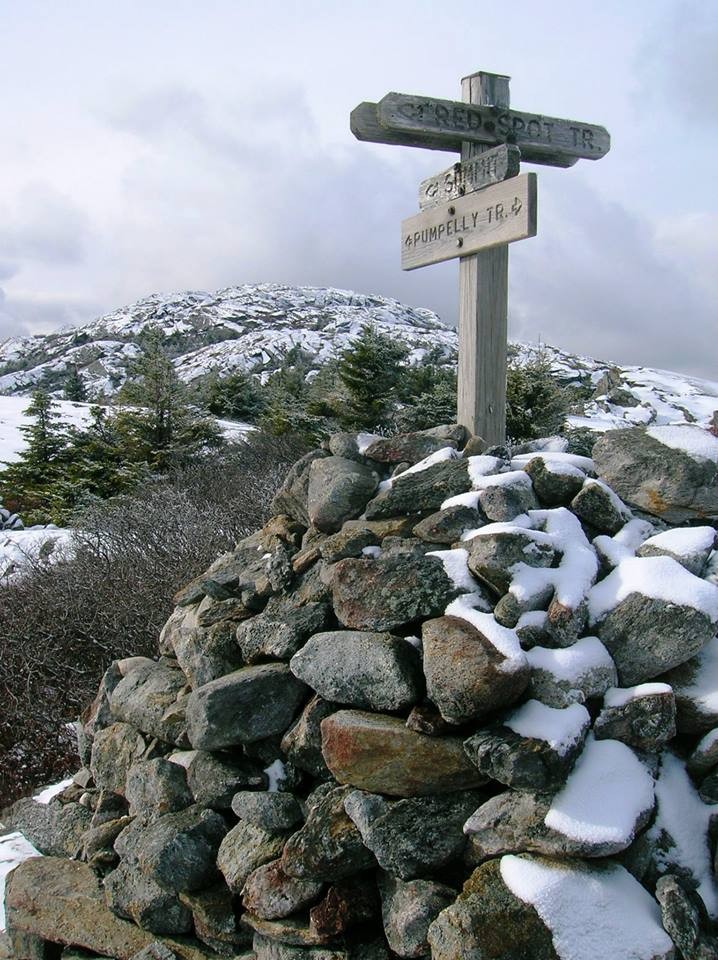 Birchtoft Trail/Red Spot Trail (from Gilson Pond Campground): (3.5 mi, 5-6 hours roundtrip) The Birchtoft Trail, blazed in red rectangles, comprises of the first 2.1 miles of this route, along easy, gradual grades. At the end of the Birchtoft Trail, the route briefly joins onto the Cascade Link before splitting onto the Red Spot Trail. Blazed with red circles outlined in white, the Red Spot trail is a steady 1 mile rocky climb up the east flank of the mountain. The Red Spot Trail ends at a junction with the Pumpelly Trail. The Pumpelly Trail makes up the remaining 0.4 miles to the summit.
