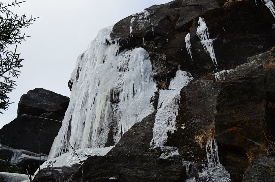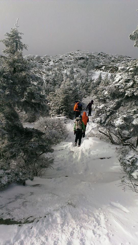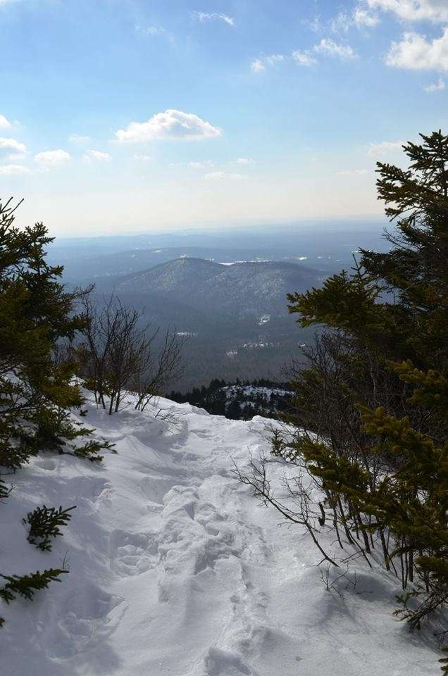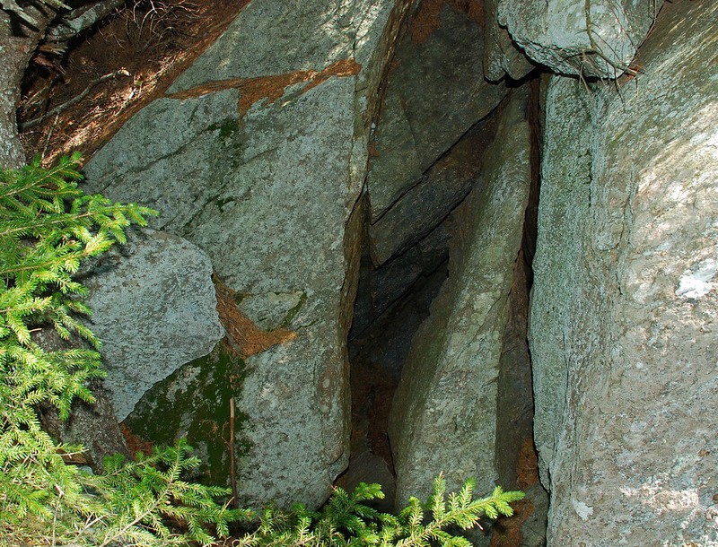 Spellman Trail (from Park Headquarters, via White Dot/Cascade Link): This trail is advised for ascending instead of descending and should not be traveled if wet or icy. The steepest climb on the mountain is located at the trail’s middle section which then leads to Pumpelly Trail, located north of the Sarcophagus. The distance from where Spellman Trail departs Cascade link and connects with Pumpelly is 0.6 mi. and takes about 35 minutes to hike. The trail beginning affords and easy grade which then turns left towards a steep pitch and then follows a brook, turns right and follows an easy grade again for a bit. Great views of the east can be seen after a bit of scrambling over ledges and boulders. Soon before reaching Pumpelly Trail, you can expect a moderate grade climb through spruce woods.