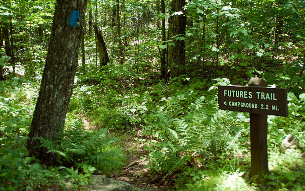 Futures Trail (4.6 miles one way): The Futures Trail starts alongside campsite #22 in the Mt. Ascutney State Park campground (day use fee required). Total distance to the summit is 4.6 miles (at 4.1 miles the Futures Trail connects to the Windsor Trail). Highlights of this trail include Bare Rock Vista (1.0 mile) and the Steam Donkey (3.5 miles), a steam-powered machine used for cable logging in the early 1900s. Several sections of this trail can also be accessed by parking areas located along the Mt. Ascutney Mountain Road. Parking is available during the park operating season.