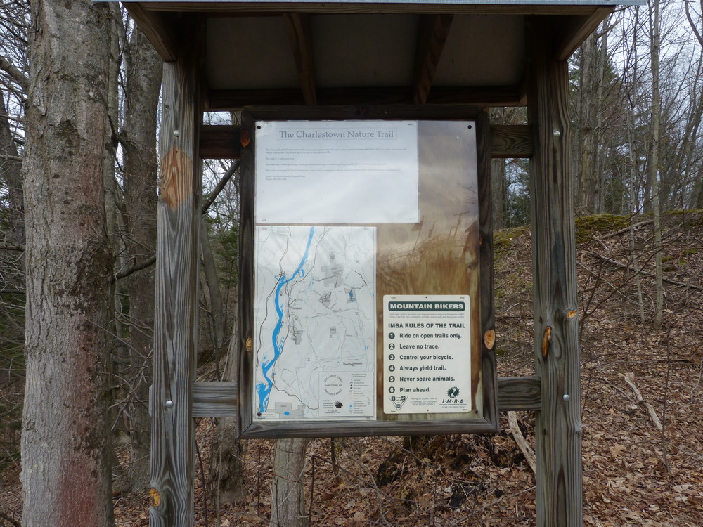 Trailhead and parking are located north of the Charlestown Fire Station. The trail kiosk is north across a small field.