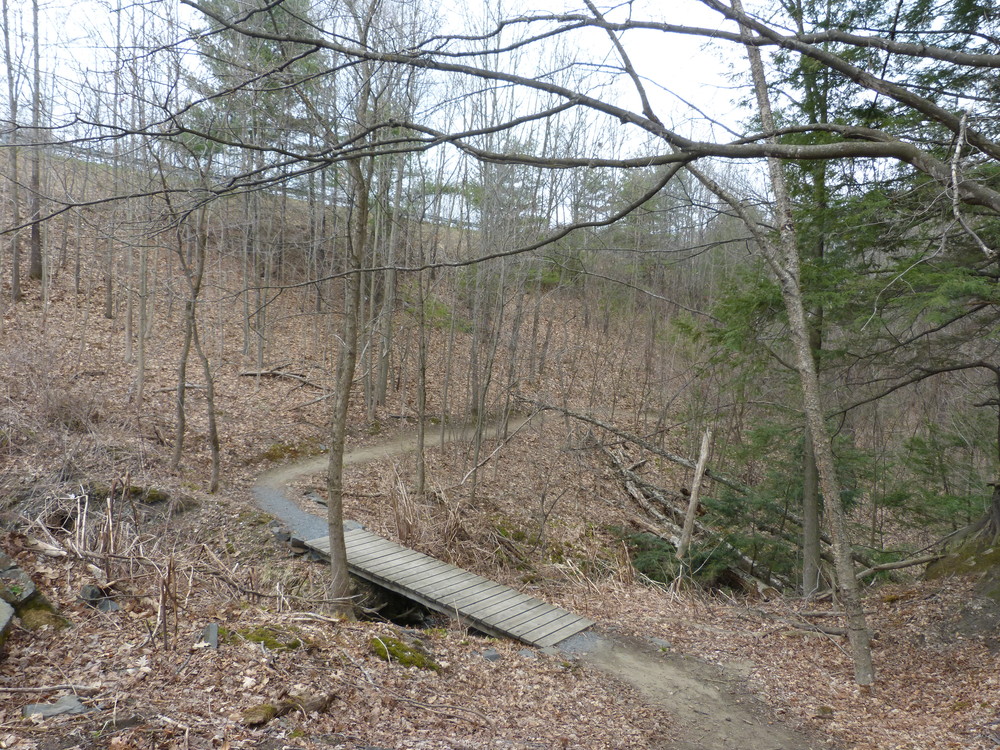 Charlestown’s oldest trail, first opened in 1969, used by the school for nature education; hence its name. The trail, 0.5 miles long, starts north of the firehouse, up over a ridge and down to Clay Brook, over the culvert and upstream, up a hill through a variety of habitats, including: the riparian buffer zone, hemlocks, hardwood, finishing in a pine stand. Once at Fling Road, if you look back over the brook, you’ll see the remnants of a grist-mill dam. If you don’t want to go out and back, you can turn left and head down Fling Road, past the town’s transfer station to Route 12, left again, and back to the firehouse. The total distance around is 1.5 miles.