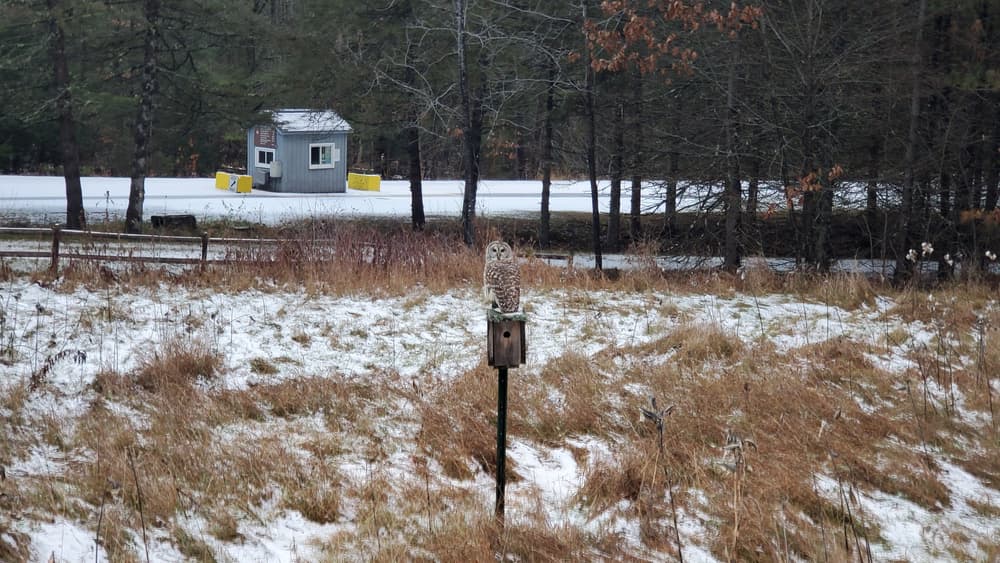 The nature trail is a lollipop loop of just under one mile. It is a great trail for birders, with opportunities to spot eagles, hawks, owls, and plenty of other birds.