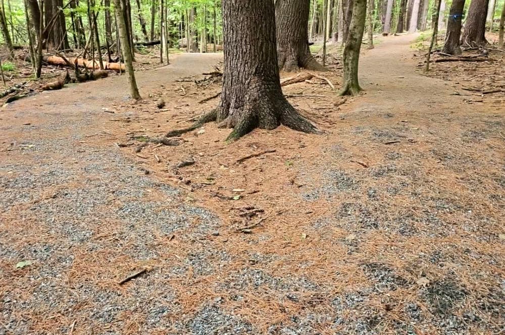 All trails are relatively short. The most accessible route, as indicated on the map, is a 6-foot wide gravel and stone dust surfaced trail with low slopes and cross slopes. See Trail Access Information below for more information about this Accessible Experience. A few benches are scattered throughout the trail network.