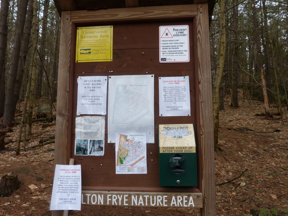 A 1.5-mile trail network on a 36-acre conserved property that is adjacent to the Marion Cross Elementary School. The area is owned by the town of Norwich, managed by the Milton Frye Natural Area Committee, and conserved by the Upper Valley Land Trust.