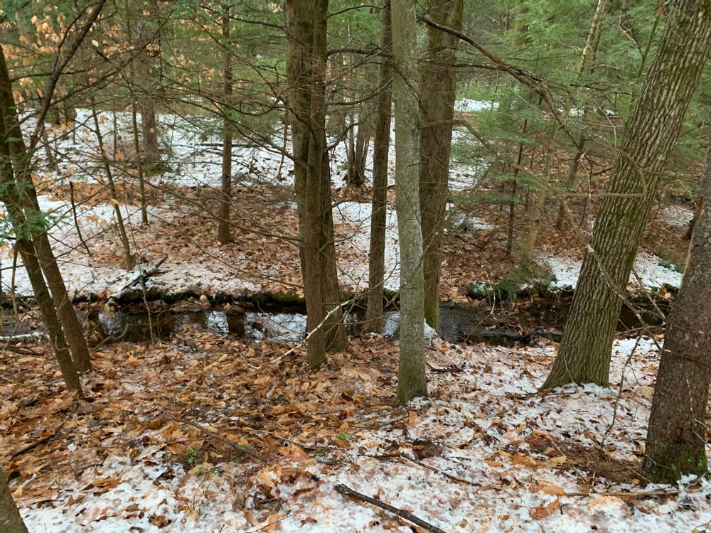 Follow the river beneath towering white pines. Don’t trip in the animal holes, probably made by bank beaver. Notice partridgeberry and Canada mayflowers along the way.