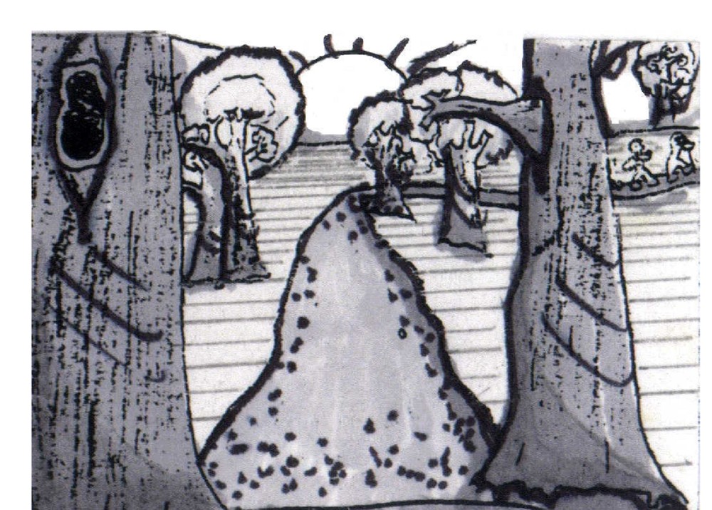 Cross another wooden bridge and walk uphill into another pine grove. The trail bears right along the back of an ancient cemetery. Notice the tombstones now buried in the roots of the large white pine. Was the tree there when the stones were first placed?