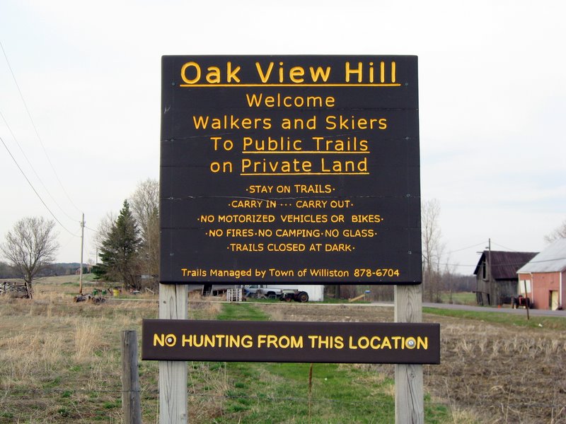 Williston Conservation CommissionFrom Route 2: At the 4-way stop in Williston Village Center, go south on Oak Hill Road. The trailhead parking area is on the west (right) side of Oak Hill Road, a few miles from the 4-way stop.