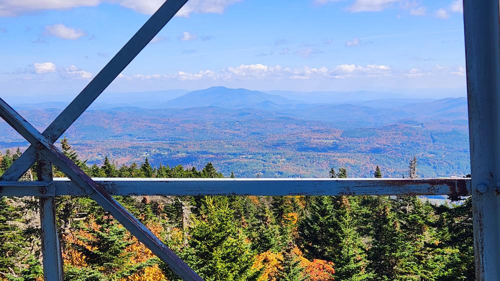A short hike (0.3 miles one way) to the fire tower and summit of Okemo Mountain is available seasonally from the top of the paved Okemo Mountain Road. Drive up the paved road and park in the wide gravel area at the end of the road being careful not to block the gate. Walk around the gate and up the gravel surfaced work road approximately 0.2 miles. When approaching the height of land, look for an Okemo Summit Trail sign on the right. Turn right and follow trail 0.1 mile to signed intersection with the Healdville Trail. Continue straight to fire tower.