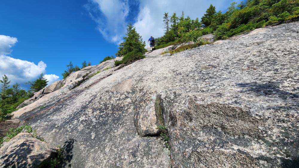 Percy Peaks Trail: (3.8 miles round trip - 2,200’ ascent.) Percy Peaks Trail has easy to moderate grades for much of its first mile before it steepens. The final push to the summit requires hiking across exposed granite ledges, which can be slippery and potentially dangerous when wet.