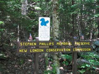 This trail is on a wooded hillside between Goosehole Pond and Otter Pond. Trail highlights include a notable view of Mount Sunapee and Lake Sunapee and access to Otter Pond. The trail at the Phillips Memorial Preserve leaves from the parking area and follows along the edge of the preserve property, climbs by an old quarry, then reaches the top of the hill. Beautiful views of Lake Sunapee are seen from the trail as you head down toward Otter Pond. At the trail intersection toward the bottom of the hill, a right turn brings you to the edge of the pond and left turn goes back to the parking area. The outer loop trail is just under a mile in length. A forestry project was completed here in 2013 and a forestry cover map was prepared.