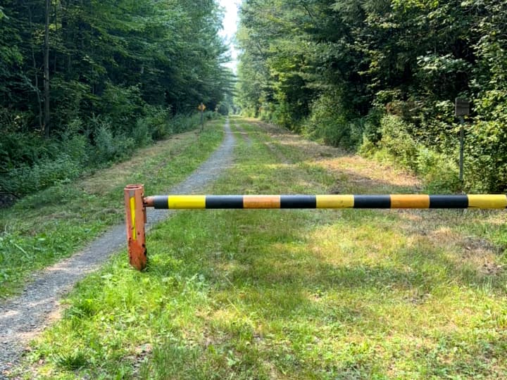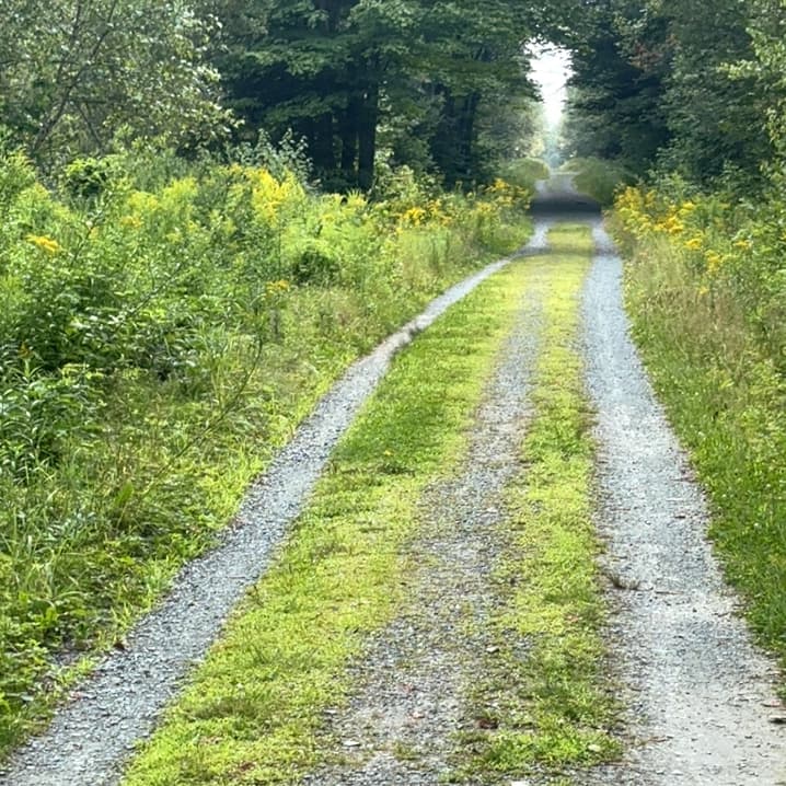 About half a mile north of NH-115, the Presidential Rail Trail crosses NH-115A. Look for a gate on the left and park in the small parking area on the side of the trail, taking care not to block the gate. There are no ADA-designated parking spaces in the parking area that provides room for about 6 cars. However, the lot is level, somewhat sandy but hard-packed, and accessible for most wheelchairs and other mobility devices. There is a 52-inch gap between the gate at the rail trail trailhead and a post that blocks entrance to ATVs but allows entrance for all others. [E911 address for this trailhead: 794 Meadow Road, Jefferson, NH 03583 (NH-115A)]