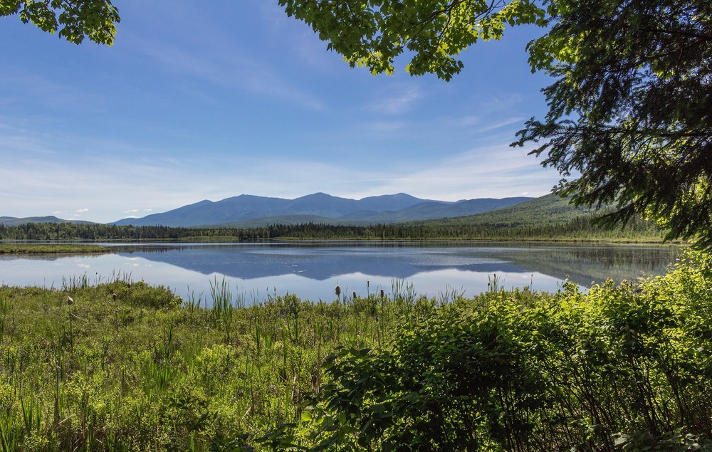 A portion of the Presidential Rail Trail (which runs from Gorham to Whitefield) heads west for 2.6 miles from NH-115A to Cherry Pond, meeting up with the Pondicherry Rail Trail at Waumbek Junction. Following the former bed of the Boston & Maine Railroad, this trail passes through two marshes and a variety of habitats and offers a scenic approach to the pond. This section of trail was resurfaced in 2020 with 3/4 inch ledge pack (a mixture of stone, sand, and fines) and a hard, erosion-resistant surface was created. Like the Pondicherry Rail Trail, this level, 8 foot wide, hard-surfaced trail is good for walkers, bicyclists, wheelchair users, and others with mobility challenges. See Trail Access Information below for more information about this Accessible Experience.