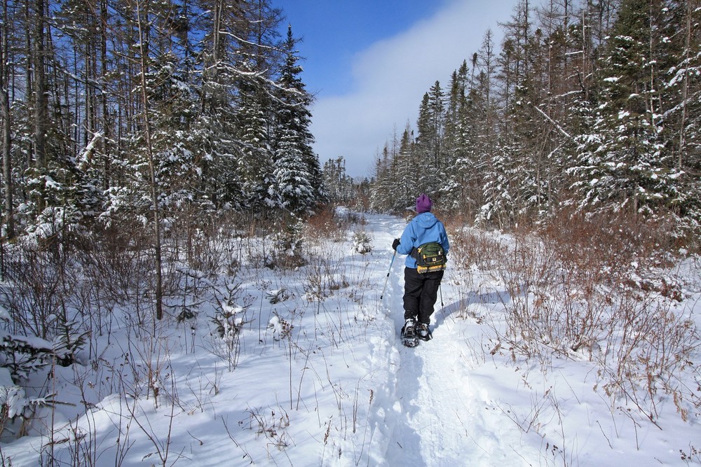 The Mooseway is a winter-only trail for snowshoeing and cross-country skiing on the north side of Pondicherry Wildlife Refuge.