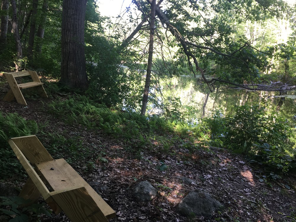 Visitors can enjoy the short stroll to the Powwow River to access paddling, fishing, or simply to enjoy the view from one of the Leopold benches.