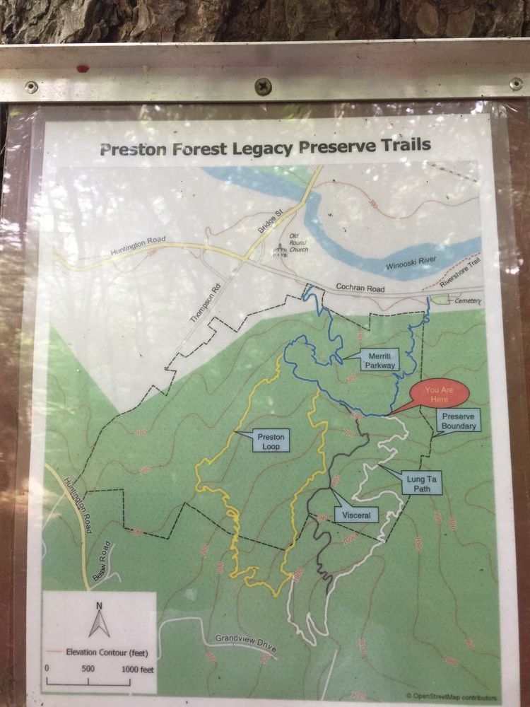 The trail is on the Preston Forest Legacy conserved land just south of Richmond's Round Church.