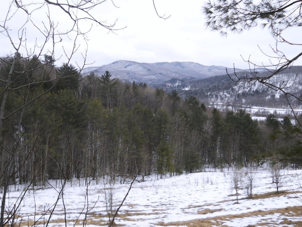 The Access Road (1,975 feet) and former VAST trail (1.5 miles) climb steeply, and connect to several narrow, lightly maintained trails that offer occasional views across the Winooski Valley and towards the Cochran’s ski area and the Green Mountains, including Camels Hump. The Meadow Meander Trail (352 feet) connects the Access Road and to the former VAST trail, including a short section called the Farm Road (850 feet). The Mountain View (1,210 feet) and Urbanik Way (1,209 feet) trails are narrow packed earth/dirt trails that both use switchbacks as they ascend/descend 120 feet and 300 feet respectively.