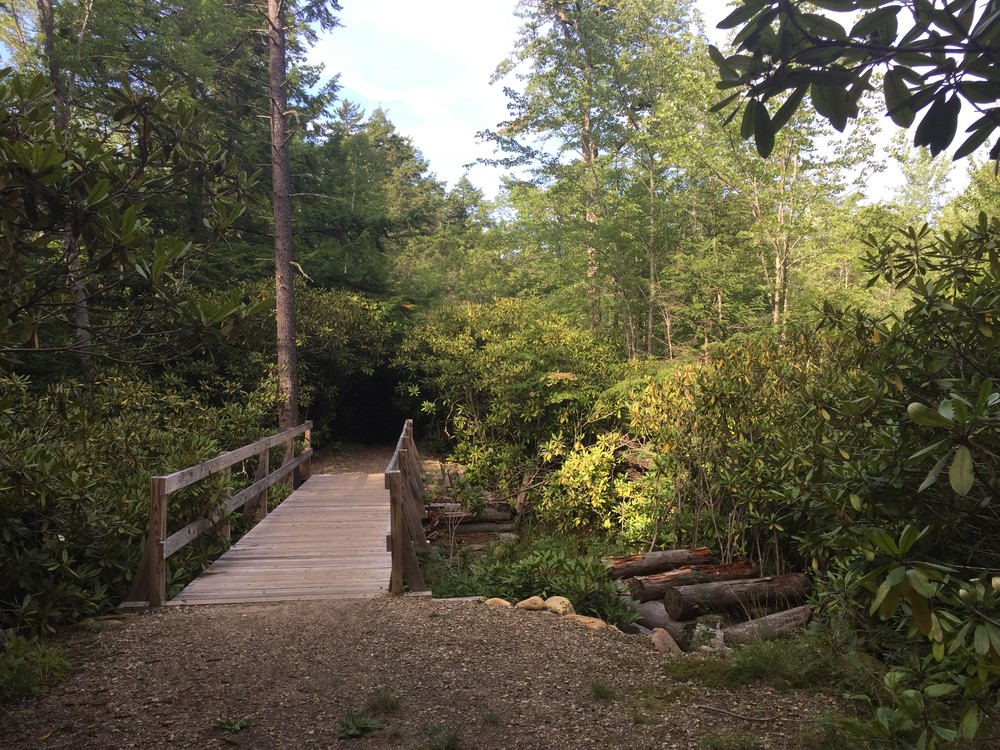 Pets are only permitted on the Little Monadnock Trail and the section of the Rhododendron Trail that leads to it. Pets are not permitted on the trail system within the rhododendron grove.
