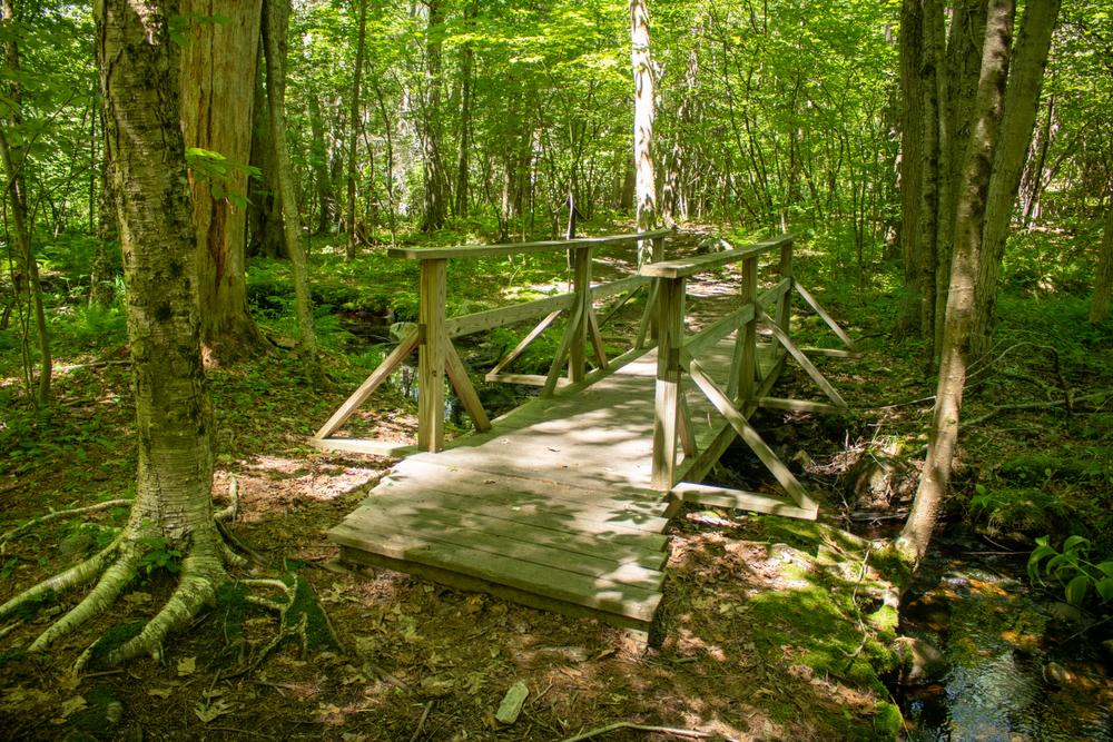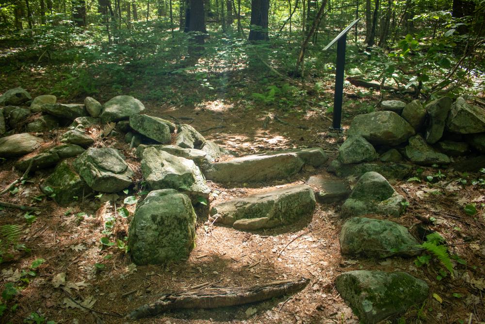 The nature and poetry trail starts from behind the parking lot and loops through the field and forest that inspired some of Robert Frost's most famous poems. Along the way there are fourteen signs with poems pointing out important points of interest. The trail is relatively flat, but roots and rocks may cause tripping hazards along the way.