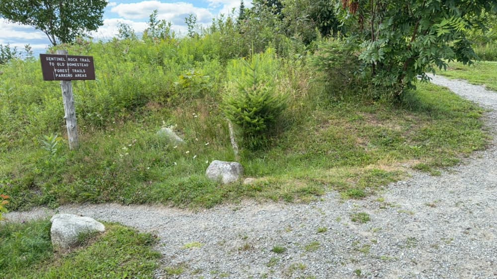 Trails through the fields connect the Sentinel Rock Accessible Trail to the old homestead, to a loop through the forest and to the other two parking areas.