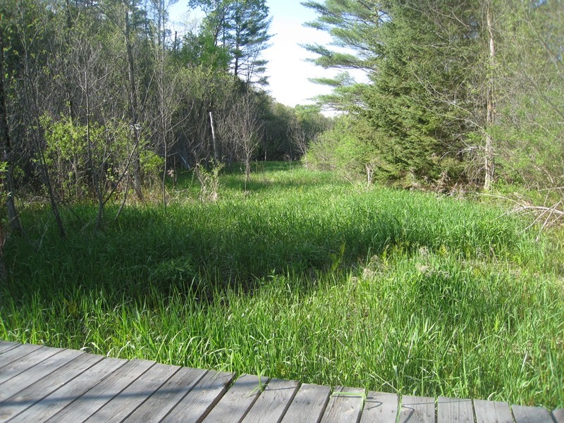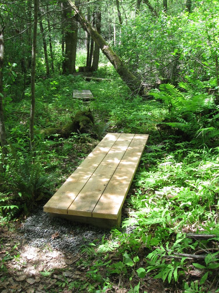 Watch out for exposed tree roots on the trail. Keep an eye out for minor patches of poison ivy. Biting insects can be numerous at times. Several wet area crossings located beyond the boardwalk are spanned with bog bridges -- if they're wet please watch your footing.