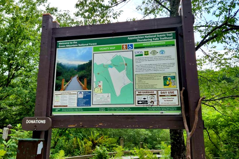 Thundering Falls provides the first universal accessible portion of the Appalachian Trail in Vermont with wheelchair accessible parking on River Road in Killington.