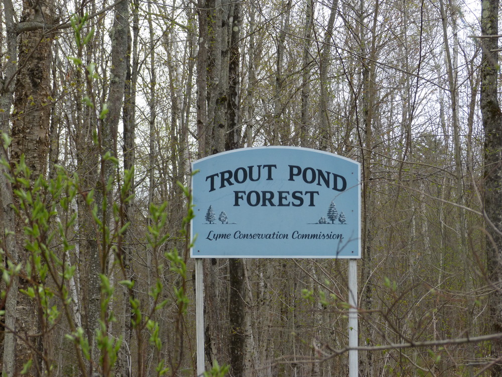 The Trout Pond Forest is predominantly a mature northern hardwood forest, with pockets of softwood scattered throughout. Timber stand improvement cutting, based on a forest inventory by Ben Hudson of Lyme, took place on parts of the tract in 1998-2000. A 200-foot buffer around the pond protects this sensitive area from disturbance. In 2001 the Conservation Commission, with a grant from the NH Department of Resources & Economic Development, prepared the parking area, re-graded the logging road, and marked the trails. As an Eagle Scout project, Ian Smith led a team which rerouted part of an earlier trail to a drier, more scenic path on Town land.
