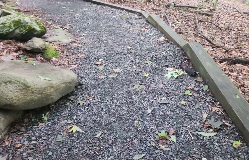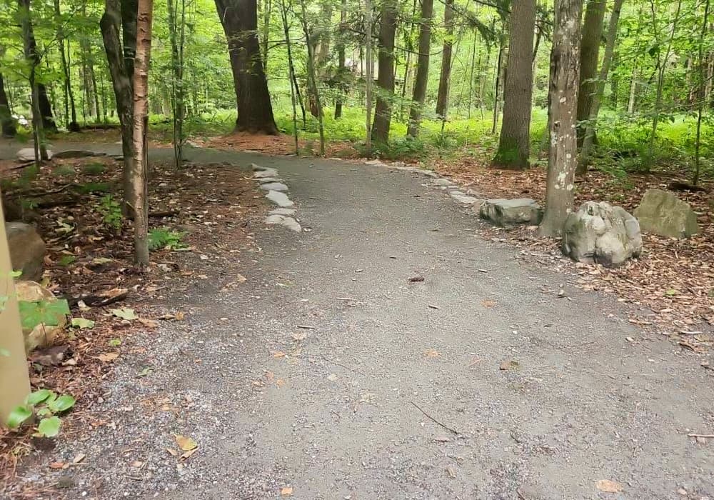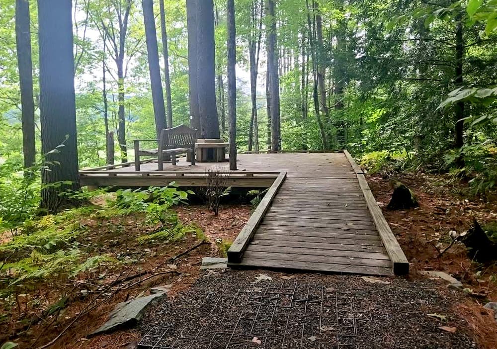 The most accessible route is on Forest Canopy and McKnight Trails as well as the campus walkways. The walkways are paved or compacted gravel and the trails are compacted gravel. All are 6+ feet wide. The McKnight trail ends at an accessible observation platform with views through the forest to the Ottauquechee River. See Trail Access Information below for more information about these Accessible Experiences.