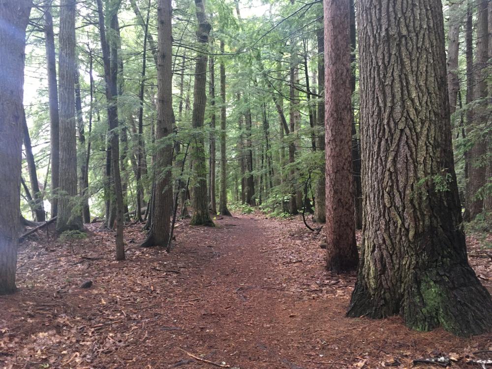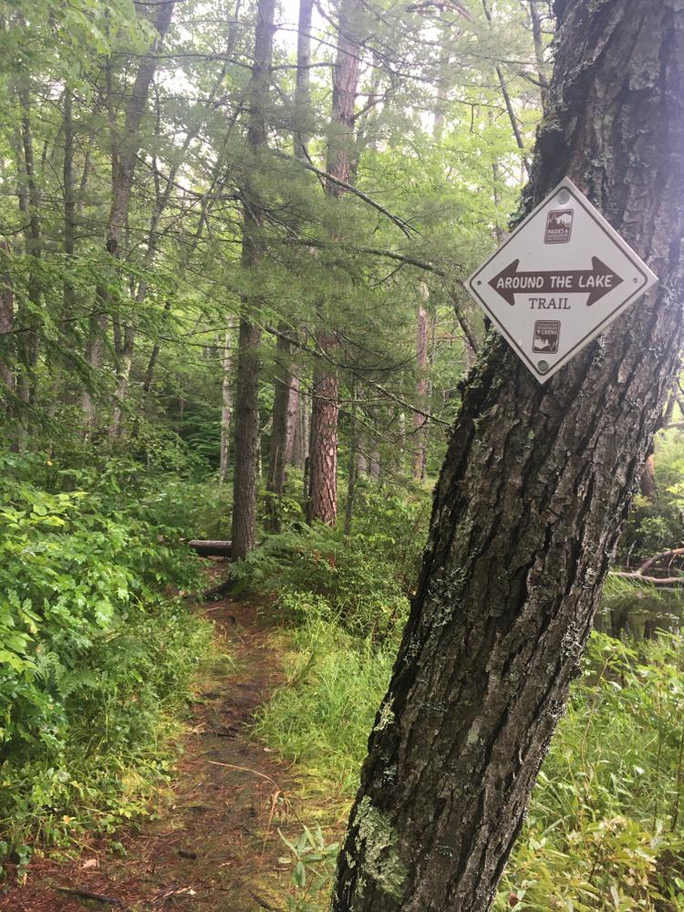 Although known best for its swimming area, White Lake State Park also features a gentle trail that circumnavigates the lake. The 2-mile Around The Lake Trail begins from the main beach area and heads in either direction around the shore edge. From the beach, the trail is poorly marked and initially follows paved paths; when in doubt, follow the route closest to the water's edge, and the trail will soon turn to singletrack along the shore.