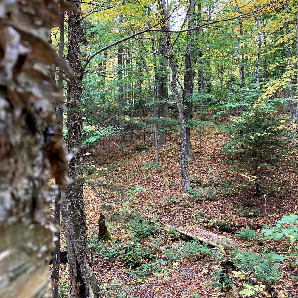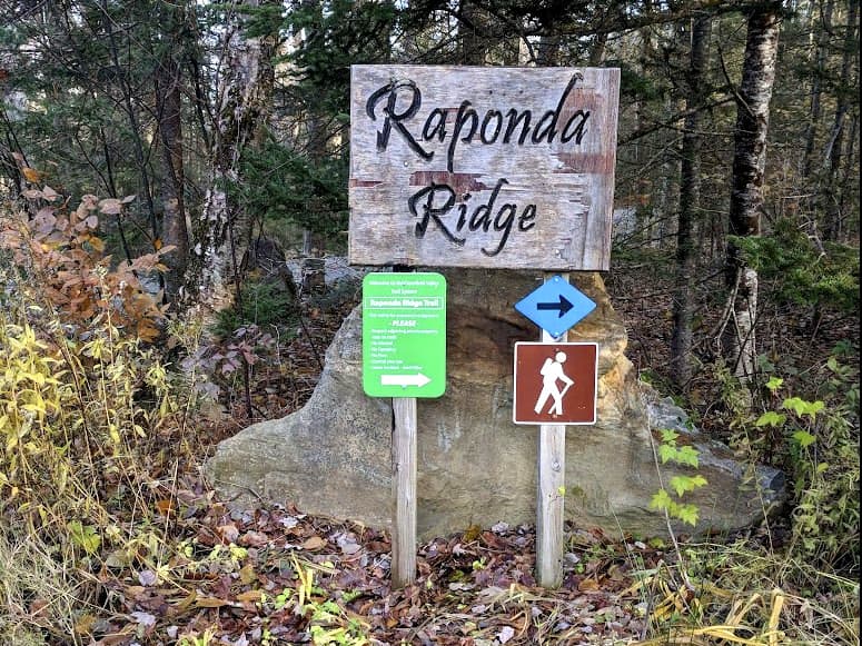 The Raponda Ridge trails are accessed from the Raponda Ridge parking area. Near the top of the ridge, you can continue ahead or turn to follow a babbling brook. These branches of the trail rejoin and then intersect the Hogback Mountain trails. From there you can continue on to Hogback Mountain and visit the gift shop, brewery, distillery, and the Mt. Olga fire tower.